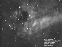 The MallinCam PRO camera used for these images was limited to an exposure length of 2.1 seconds; unlike the MallinCam B&W HYPER which is capable of 12 second exposures. It also did not have any cooling mechinism to help reduce warm pixels; unlike the MallinCam B&W HYPER which has a Peltier cooler intergrated into the camera.