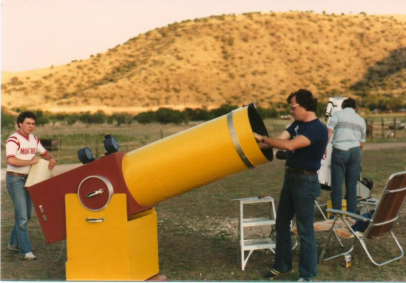 Another view of the original 17.5" Dob at TSP '83 showing Steve Harison to the left and Larry Paulk's scope and back to the right.