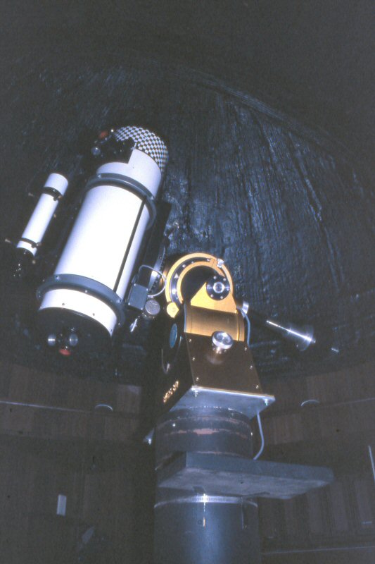 Though out of order, I have included another view of the 8" f/15 Cassegrain scope on Byers 812 as seen from inside the 12 1/2' fiberglass domed observatory, Waning Moon.